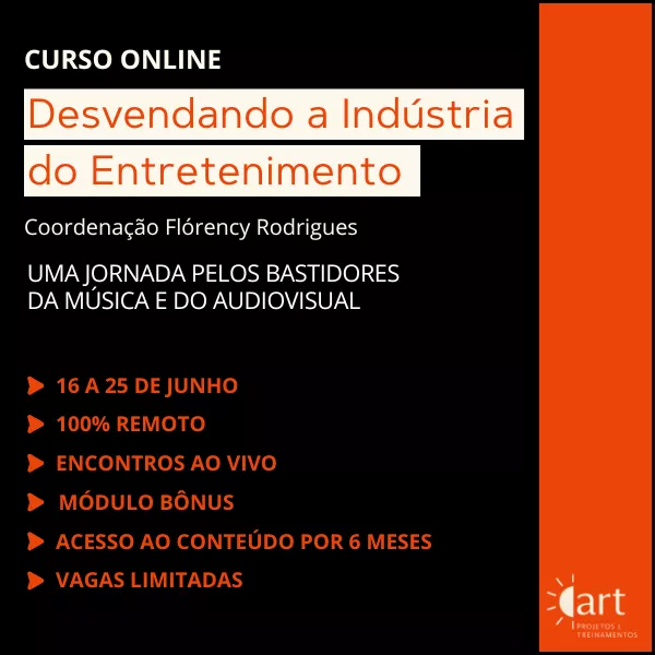 O mundo do entretenimento é feito de talento, criatividade e sonho, mas também de estratégia, estrutura e conhecimento. Neste curso inédito, coordenado pela advogada, produtora cultural e professora Flórency Rodrigues, vamos revelar o que está por trás da construção de carreiras, criação de projetos e desenvolvimento de grandes produções na música e no audiovisual.